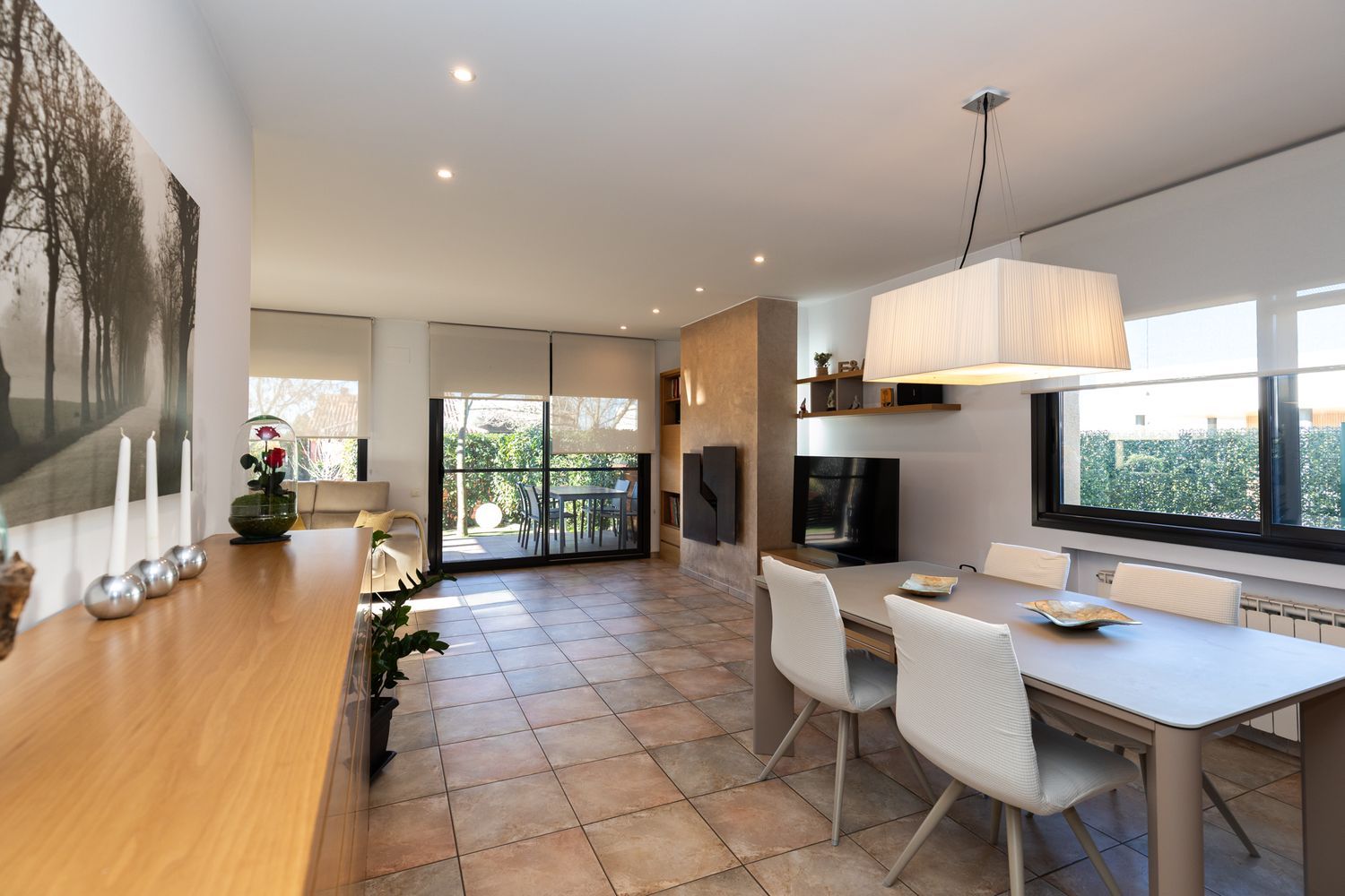 La vivienda cuenta con un gran salón-comedor muy luminoso, con salida directa al patio y jardín privado con piscina, creando un espacio perfecto para disfrutar del aire libre durante todo el año.