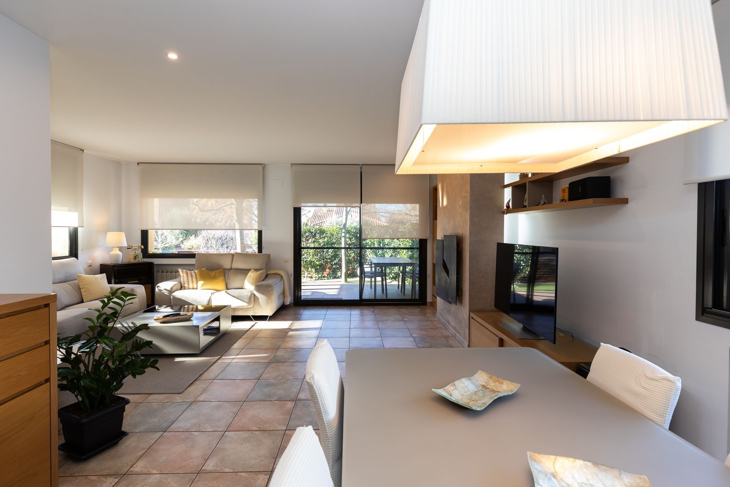 L’habitatge compta amb un gran saló-menjador molt lluminós, amb sortida directa al patio i jardí privat amb piscina, creant un espai perfecte per gaudir de l’aire lliure durant tot l’any.