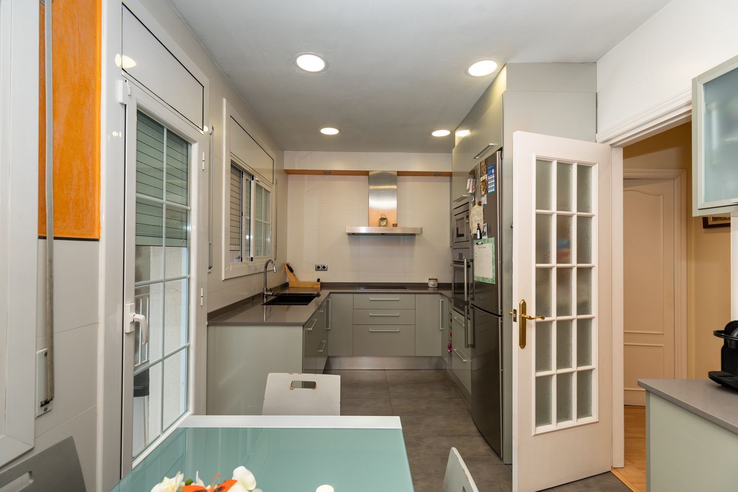 Suelos de parquet y cerramientos de aluminio.