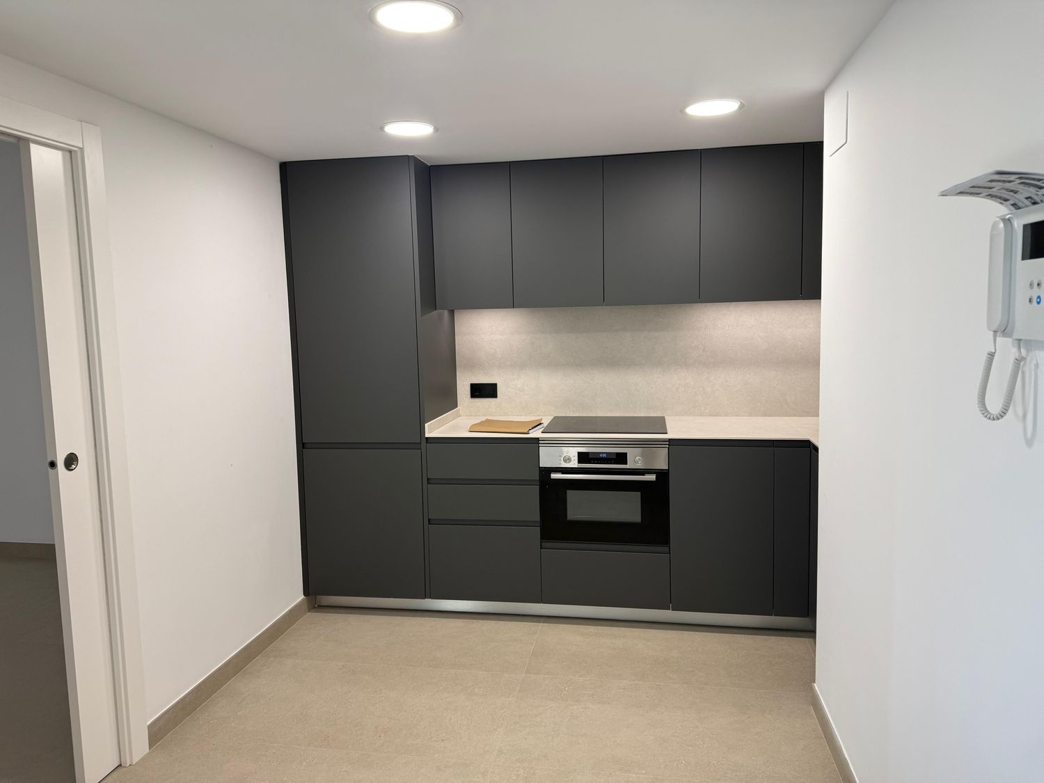 Cocina totalmente equipada con electrodomésticos (nevera, lavavajillas y horno-microondas)