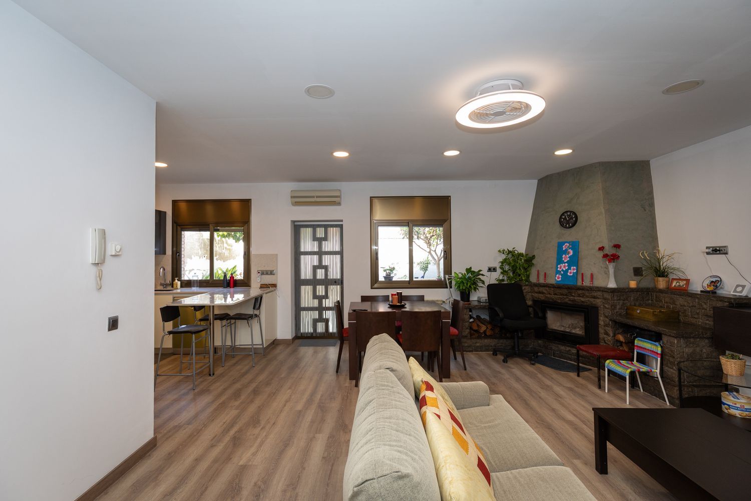 Planta baixa: ampli garatge, acollidor menjador d’estiu perfecte per a reunions amb família i amics, un bany complet, cuina oberta i sortida directa a una gran terrassa, ideal per gaudir de l’exterior durant tot l’any.