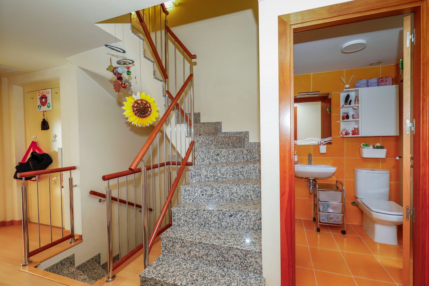Pujant a la primera planta tenim una suite amb bany (plat de dutxa). Zona comuna on hi ha un altre bany amb banyera, una habitació doble i una habitació individual.